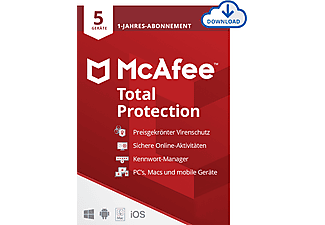 McAfee® Total Protection, Antivirus- und Internet-Sicherheitssoftware, 5 Geräte (Windows®/Mac®/Android/iOS), 1 Jahr, Download Code - [Multiplattform]