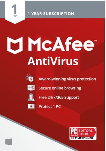 McAfee AntiVirus Protection 2022 | 1 PC (Windows)| Internet Security Software | 1 Year Subscription | Key Card